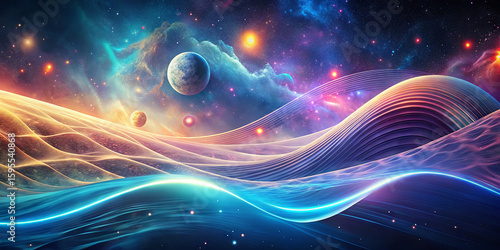 cosmic, landscape, wave, planet, star, galaxy, colours, universe, space, science fiction, celestial, surreal, outer space, harmonious, abstract, pattern, light, energy, horizon, atmosphere, exploration, forever, digital artwork, fantasy, flow, creation, phenomena, stunning, scenery, beauty, imagination, dreamlike, night sky, visual, calmness, depth