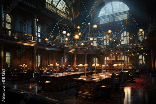 A courtroom scene where legal and ethical aspects of genetic patents are being discussed. Concept of legal and ethical boundaries. Generative Ai.