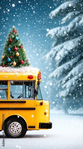 christmas, school, bus, winter, snow, tree, festive, holiday, decoration, yellow, snowy, background, seasonal, joy, transport, wonderland, celebration, scene, cheerful, ornament, pine, tranquil, landscape, community, spirit, children, nostalgia, warmth, cheer, family, tradition, scenic, travel, beautiful, bright, outdoors, happy, gift, giving, frosty, cosy, cold, weather, happiness, nature, route, activity, transportation