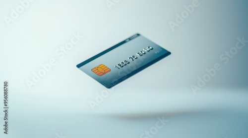 A credit card hovering above a white surface, photographed against a solid white background