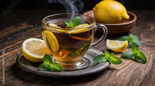 tea, cup, lemon, drink, glasses, beverage, hot, green, white, food, mint, breakfast, yellow, leaf, isolated, fruit, healthy, herbal, liquid, citrous, fresh, mug, herb, water, closeup
