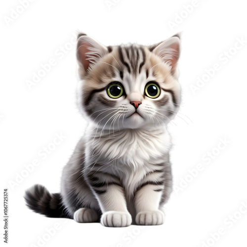 A cute 3D icon of a small, playful cat with round eyes and soft fur.