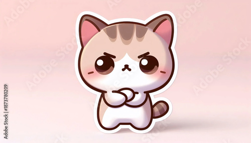 A cute but annoyed kitten sticker, Ai generated image
