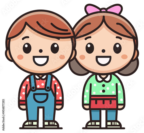 a cute cartoon style icon of a boy and girl. illustration_vector.