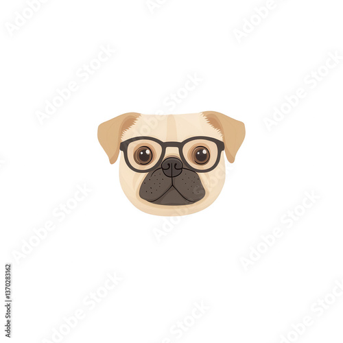 A cute illustrated pug dog wearing glasses, ideal for pet lovers and animal-themed designs, showcasing a playful and intelligent expression.