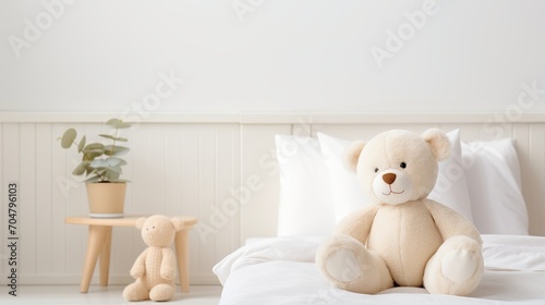 teddy bear, bed, stuffed animal, toy, childhood, comfort, cuddly, soft, beige, white, room, decor, interior design, minimalism, scandinavian, neutral, pastel, playroom, bedchamber, childcare center, infant, toddler, kindergartner, children, children, children, family, home, love, care, innocence, happiness, joy, play, fun, imagination, creativity, learning, development, growth