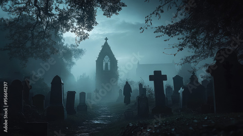 cemetery, cemetery, foggy, dark, ghostly, spirit, gravestone, haunted, eerie, mystical, supernatural, fog, night, gloomy, shadow, haunting, skittish, creepy, phantom, spectral, mysterious, grisly, desolate, haunt, undead, twilight, ghost, grim, dismal, grave, aethereal, foreboding, sombre, ominous, misty, chilling, midnight, apparition, shadowy