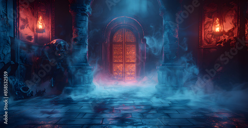 fantasy, background, dark, night, light, illustration, landscape, stone, magical, halloween, mysterious, fog, art, ancient, horror, blue, concept, castle, sky, old, moon, design, gate, red, forest, temple, fire, door, haunted, evil, skittish, black, fear, vintage, skull, scarey, nature, room, abstract, scene, tree, grunge, people, adventure, travel