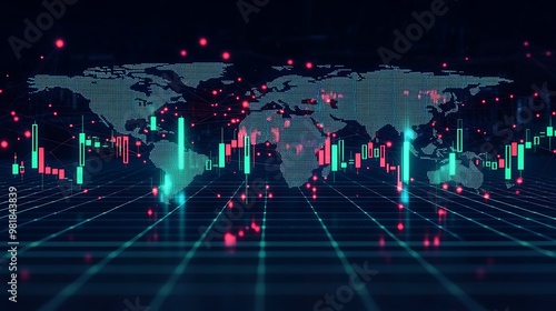 digital, market, green, red, candleholder, earth, map, glowing, node, region, network, line, exchange, global, cinematic, lighting, hd, texture, sleek, modern, design, finance, stock, trading, graph, surge, connection, financial, route, economy, visual, futuristic
