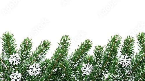 A decorative arrangement of evergreen branches with snowflakes, suitable for winter or holiday themes.