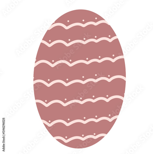 A decorative Easter egg in red brown, featuring symmetrical wavy patterns and tiny dots in beige. The calm color palette adds a touch of rustic charm.
