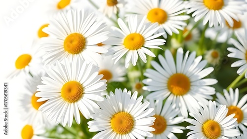 A delicate arrangement of fresh daisies bathed in sunlight, evoking purity and natural beauty.