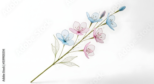 flower, floral, plant, blossom, nature, spring, summer, garden, botanical, delicate, fragile, beauty, grace, elegance, romance, love, gift, decoration, art, craft, hand-made, silk, fabric, wire, stem, leaf, green, blue, pink