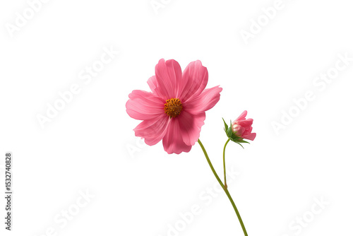 cosmos, flower, bud, bloom, flowering plant, floral, blossom, pink, stem, elegance, serenity, beauty, nature, vibrant, fresh, isolated, growth, flora, spring, summer, season, garden, botany, detail, closeup, delicate, honed, natural, tender, fragile, single, pure, bright, cheerful, peaceful, calmness, grace, creation, artistic, pretty, aesthetic, charme, allure