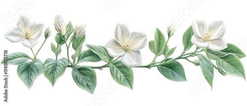 flower, leaf, botanical, nature, illustration, art, beauty, flora, white, green, flower petals, bud, vine, organic, design, detail, aesthetic, growth, garden, plant, blossom, arrangement, elegance, fresh, spring, summer, decoration, calmness, serenity, harmony, colours, texture, ornamental, visual, creativity, craftsmanship, environment, natural, peaceful, soft, vibrant, artistic, foliage, greenery, bloom, seasonal, composition, charme, simplicity