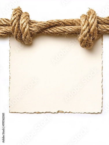 A delicate twine gracefully encircles a blank poster, providing generous space for your text against a clean white backdrop.