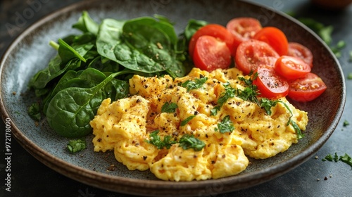 A Delicious Plate of Scrambled Eggs with Spinach and Tomatoes Perfect for Breakfast or Brunch Ideas