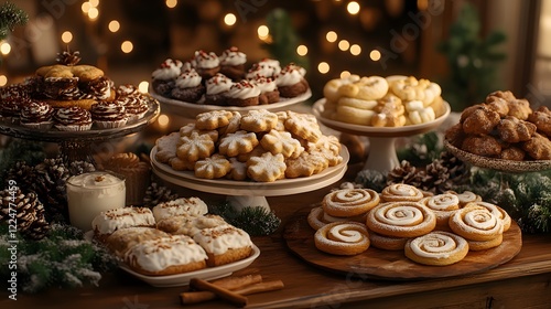 A Deliciously Cozy Holiday Treat: A Display of Traditional Christmas Cookies and Festive Decorations