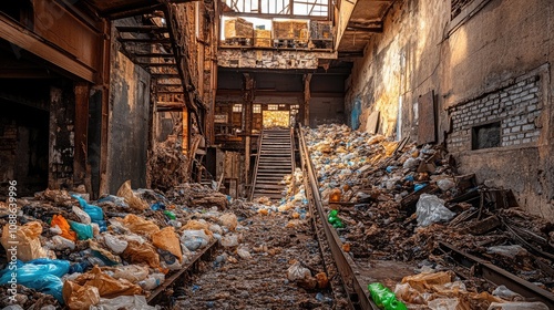 A Derelict Industrial Space Filled with Debris and Trash, Capturing the Essence of Urban Decay and Environmental Neglect in Abandoned Structures