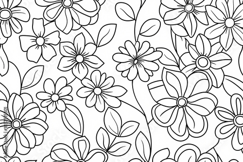 floral, flower, leaf, black-and-white, intricate, design, relaxation, creativity, whimsical, pattern, nature, outline, illustration, children, adult, doodle, hobby, craft, fun, design element, artistic, mindfulness, zen, playful, background, vignetting, hand-drawn, decorative, beautiful, spring, summer, scenery, inspiration, botanical, meditative