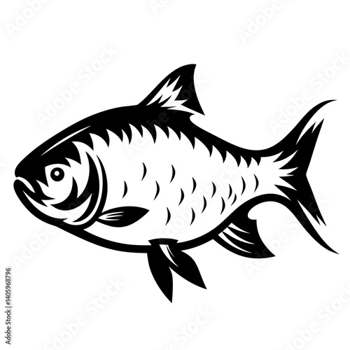 fish, illustration, black-and-white, monochrome, scaled, fin, tail, body, drawing, artwork, graphic, design, vector, clip art, image, picture, aquatic, wildlife, nature, animal, marin, ocean, river, lake, duck pond, water, creature, fauna, species, sea, fresh water, vertebrate