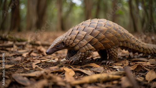 forest, leaf, scale, armoring, animal, wildlife, mammal, nature, environment, ecology, conservation, endangered, species, africa, asia, ground, walking, dry, floor, closeup, detailed, unique, distinctive, feature, natural, outdoors, daylight, sunny, earth, life, zoology, biology, creature, earth, protection, vulnerable, scaly