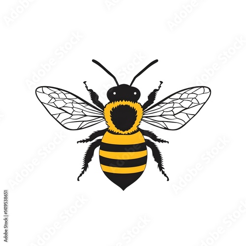 bee, honey bee, insect, illustration, graphic, design, stripes, wing, nature, animal, pollinator, honey, beeswax, apiculture, agriculture, wildlife, art, clip art, icon, symbol, emblem, template, image, drawing, vignetting, black, yellow, white, background, isolated, fauna, invertebrate, apiary, buzzing, flying, pollen, floral, botanical, natural, cute, adorable, sweet