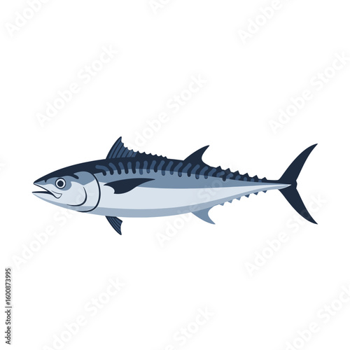 A detailed illustration of a mackerel fish in a side profile, isolated on white.