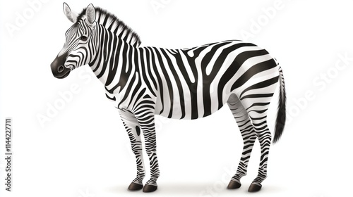 A detailed illustration of a zebra standing proudly, with bold black-and-white stripes and a realistic style, isolated on white
