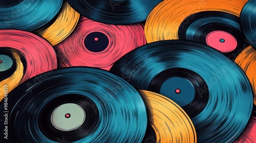 A detailed illustration of music on vinyl records, highlighting the texture and vintage charm of vinyl grooves.