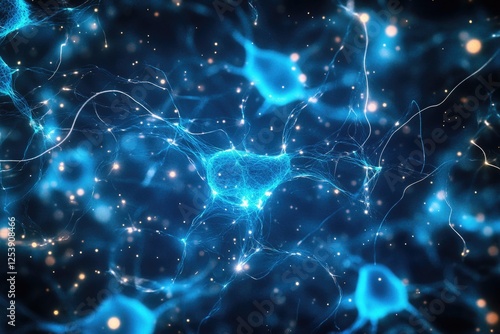 nerve cell, brain, neuroscience, neurology, anatomy, physiology, biology, cell, worked, memory, learning, neural, network, flexibility, blue, colours, close, up, microscopy, scientific, illustration