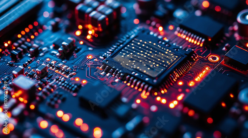 circuit, board, digital, glowing, datum, point, illuminated, dark, background, technology, electronic, component, wire, signal, microchip, transistor, circuitry, light, neon, futuristic, system, processing, pattern, abstract, network, matrix, binary, flow, logic, design, innovation, connection, screen, display, code, high technology, interconnect, automation, power, artificial, intelligence, integration, structure, precision, speed, transmission, architecture