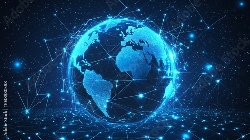 globe, digital, earth, network, connection, line, point, blue, abstract, technology, cyberspace, datum, communication, global, futuristic, space, star, connectivity, infrastructure, virtual, glowing, concept, design, graphic, illustration, background, pattern, wireframe, mesh, geometric, modern, style, three-dimensional, render, rendering, light, bright, dark, night, sky, planet, earth, galaxy, universe
