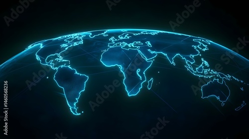 A digital rendering of the Earth, glowing in bright teal, with interconnected network lines highlighting global connectivity.