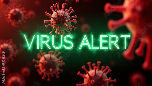 virus, alert, digital, health, warning, particle, red, green, text, background, caution, glow, infection, disease, graphic, design, outbreak, communication, signs, emergency, notification, medicals, symbol, information, science
