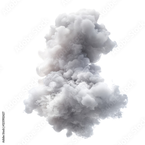 A digitally rendered image showcases a large, isolated white smoke plume against a pure black backdrop.