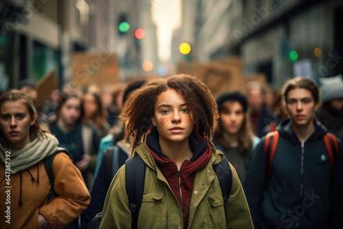 A diverse group of people participating in a climate strike, advocating for urgent action. Generative Ai.