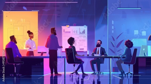 meeting, collaboration, professional, office, strategy, teamwork, evening, presentation, technology, discussion, planning, modern, corporate, diversity, brainstorming, idea, innovation, workspace, analysis, communication, colours, design, chart, graph, datum, employee, thinking, problem solving, optical, productivity, leadership, goal, projector, screen, concept, creativity, solution, research, note, function, environment, growth, dynamic, engagement, interaction, artistry