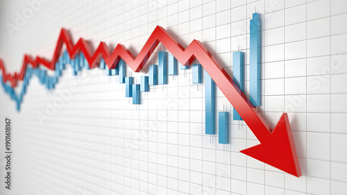graph, chart, trend, downward, arrow, red, decayed, fall, decrease, dripped, loss, negative, bad, statistic, business, finance, economy, analysis, report, datum, visualisation, infographic, information, display, screen, charting, plotting, forecast, prediction