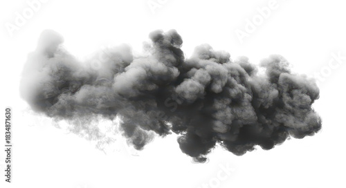 A dramatic black smoke cloud billowing against a white background. creating an intense visual effect. ideal for use in design projects. film scenes. or atmospheric imagery
