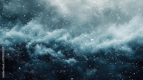 A dramatic scene of a snowstorm sweeping across a barren landscape, creating a sense of isolation.
