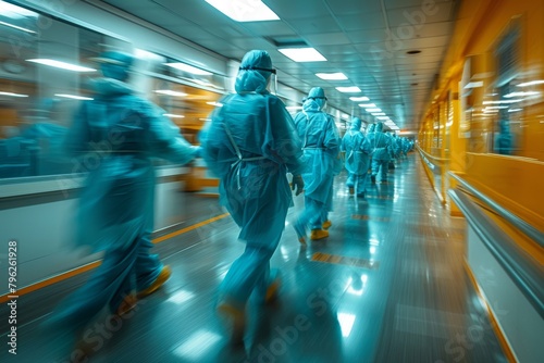 medicals, staff, corridor, yellow, blue, scrub, hospital, walking, health care, speed, urgency, care, professional, dedication, precision, emergency, efficient, action, clinical, stylish, trendy, modern, motion, blur, uniform, purpose, teamwork, responsibility, service, clean, hygiene, determined, doctor, nurse, team, oneness, clinic, sterile, health, well-being, patient, cooperation, equipment, tool