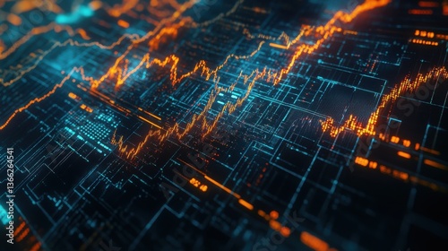 datum, visualisation, market, trend, technology, digital, orange, teal, graph, chart, information, dynamic, surge, movement, energy, futuristic, aesthetic, intricate, detail, contrast, vibrant, line, potential, activity, stock, financial, growth, fluctuation, progress, analysis, business, investment, economic, innovation