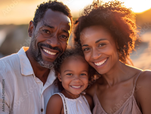A family enjoying a warm bonding moment during a sunset.