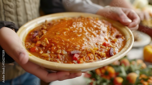A Family Gathering Table Featuring a Warm, Comforting Dish Served in a Clay Bowl Surrounded by Fresh Vegetables and a Cozy Atmosphere for Food Lovers