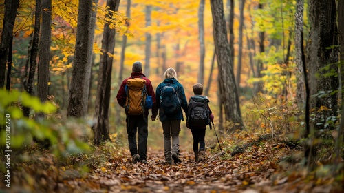 family, hiking, forest, wood, autumn, fall, nature, leaf, tree, backpack, adventure, travel, together, landscape, season, colourful, walking, vacation, green, yellow, red, orange, brown, exploration, trail