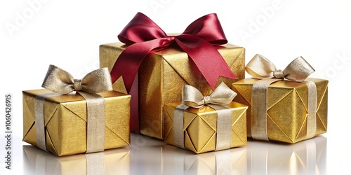 A Festive Array of Golden Gift Boxes Adorned with Elegant Ribbons, Reflecting the Warmth of Celebration