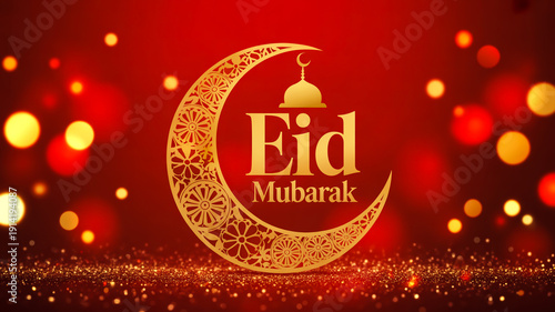 eid, greeting, card, festive, islamic, celebration, muslim, holiday, deep, red, background, gold, crescent, moon, mosque, church steeple, centered, elegant, ornate, decorative, calligraphy, arabic, spiritual, holy, ramadan, design, traditional, sacred, illumination, decor, theme, art, festival, joyful, vibrant, luxury, template, religious, spirituality, motif, night, pattern