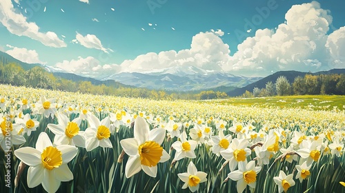 a field of daffodils sunny day