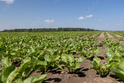 young, sugar, beet, field, spring, white, beetroot, production, ground, green, lush, beet, dirtied, food, farm, agriculture, plant, vegetable, crop, root, harvest, growing, land, growth, rural, farmland, bush, agricultural, plantation, abundance, farming, seasonal, organic, perspective, industry, sky, summer, leaf, blue, grass